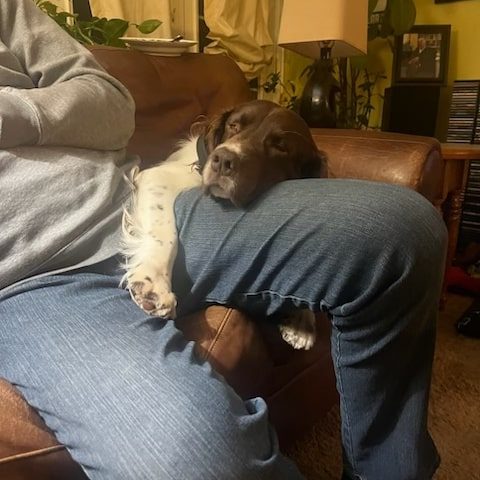 After all those adventures and time in the backyard I love nothing more than cuddling with my foster mom or dad on the couch.