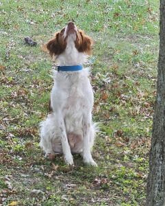 That just about sums this boy up! He is always smiling, always cheeful, always ready for a snuggle or a good belly rub! Gus is a loveable Brittany that just makes you smile when you see him. Gus always comes back into our home to check on us about every 30 minutes..Wants to make sure we are happy and okay and then out the door he goes.