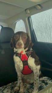 Matt’s arrival at his foster family was a non event. With his laid back personality, he fit right in to the foster home’s pack of three Britts and three Cavalier King Charles. He has wonderful social skills. However his favorite is foster Mom, making her wonder if he prefers human to canines. When company arrives our social butterfly is in the thick of it, soaking up any pet, snuggle or smooch coming his way. Matt also is a good errand buddy. He loves a good car ride.